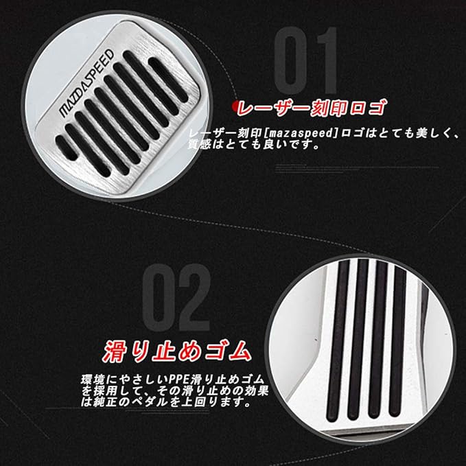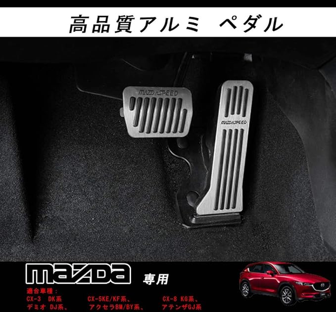 Boyous マツダ 専用 銀 アルミ ペダル フット シルバー 純正交換 2点セット 適合多数 CX-3 DK系 CX-5 KE/KF系 CX-8 KG系 デミオDJ系 アクセラBM/BY系 アテンザGJ系 等