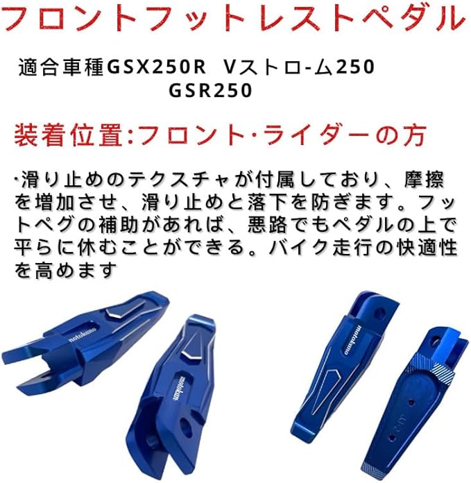 motokano フロント フットペグ 適合車種 GSX250R GSX-250R Vストローム250 GSR250 フットレストペダル (ブルー)