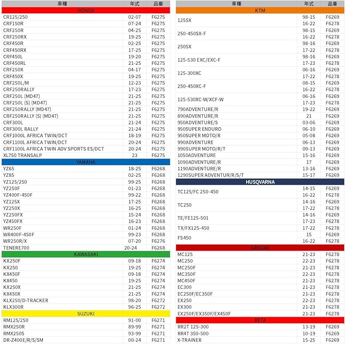 125SX '16-22, 250-450SX-F '16-22 ,250SX '17-22 ,125-530 EXC/EXC-F '17-23 ,125-300XC '17-22 ,250-450XC-F '16-22 ,125-530XC-W/XCF-W '17-23