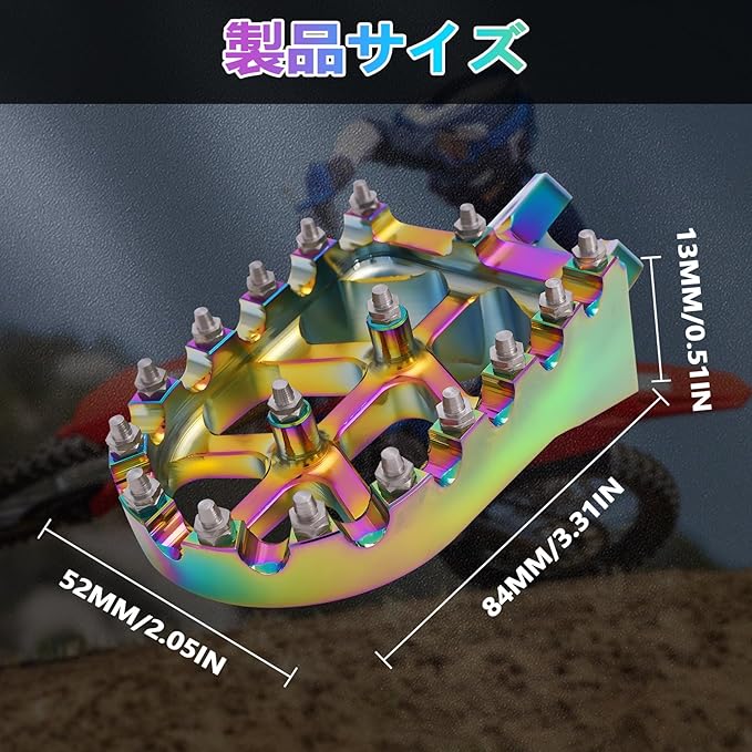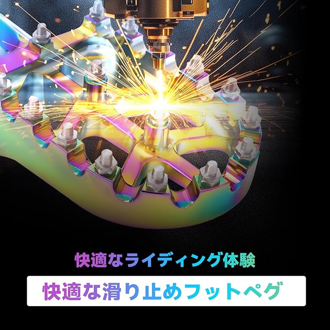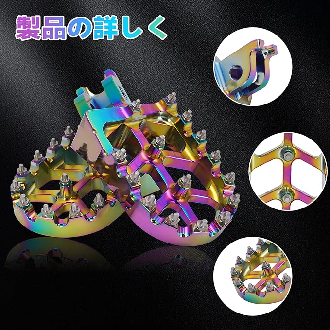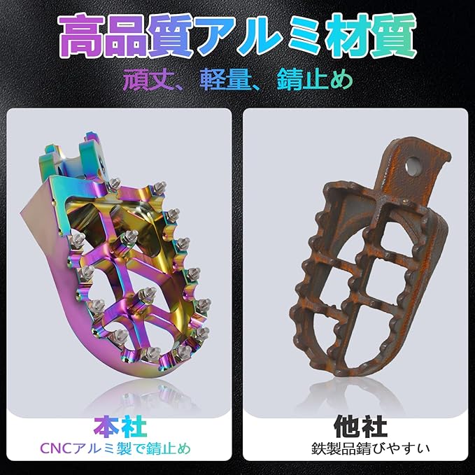 【高強度アルミニウム素材】6061 アルミニウム合金製で軽量かつ高強度。変形や腐食に強く、長期間の使用にも耐えます。バイク フットペグとして耐久性と信頼性を兼ね備えています。