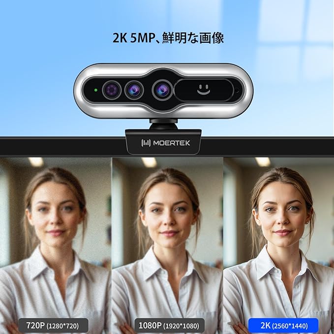 2K 5MPカメラ:この外付けPCカメラでビデオ通話をグレードアップ。84 の広視野角で、鮮明な2K 30fpsの滑らかな映像をお楽しみください。自動光補正により、オンライン会議でもクリアな映像をお楽しみいただけます。