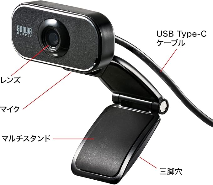 サンワサプライ WEBカメラ USB Type-C接続 フルHD 200万画素 固定フォーカス マイク内蔵 水平60 三脚穴 Windows/Mac/Chrome対応 CMS-V41CBK