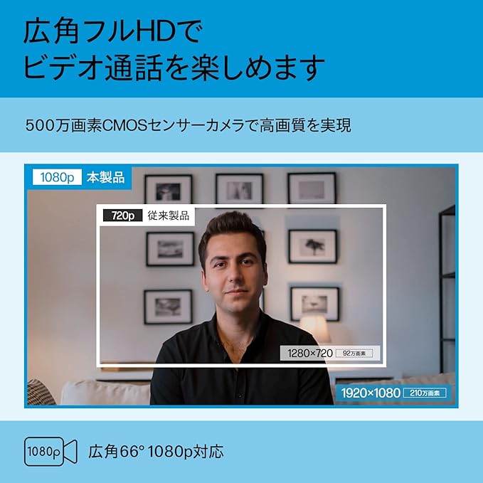 Windows OS・Mac OS・Chrome OSに対応したフルHDウェブカメラ。フルHD 1080p、内蔵マイクで没入感。66 の広角ウェブカメラと相まって、自然な会話感覚と他の人が参加するスペースを提供し、あなたを良く見せるクリアな画像とサウンドをお楽しみください。Zoom、Microsoft Teams、その他のビデオチャットと即座に簡単に連動します。