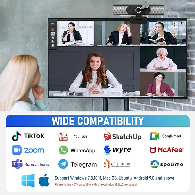 【プラグ&プレイ対応】ドライバー不要ですぐに使用可能。ノートPC・デスクトップ・Mac・スマートTVなど幅広いデバイスに対応。110度広角レンズと360度調整可能なスタンドで、最適なアングルを簡単にセットアップできます。