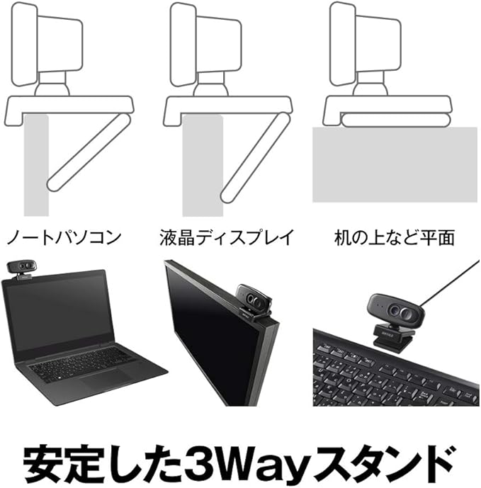 バッファロー WEBカメラ 1080P フルHD 30fps 200万画素 広角約120 Zoom/Slack/Microsoft Teamsメーカー動作確認済 Windows/Mac対応 プライバシーシャッター付 マイク内蔵 小型 シンプル 日本メーカー ケーブル2m ブラック BSW505MBK