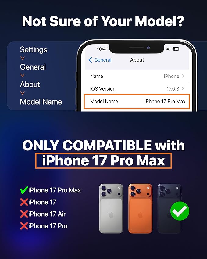 iPhone 17 Pro Max (6.9インチ)専用 – 本製品は iPhone 17 Pro Max 専用です。iPhone 17/17 Air/17 Pro には対応していません。ご購入前に「設定 > 一般 > 情報」で端末モデルをご確認ください。