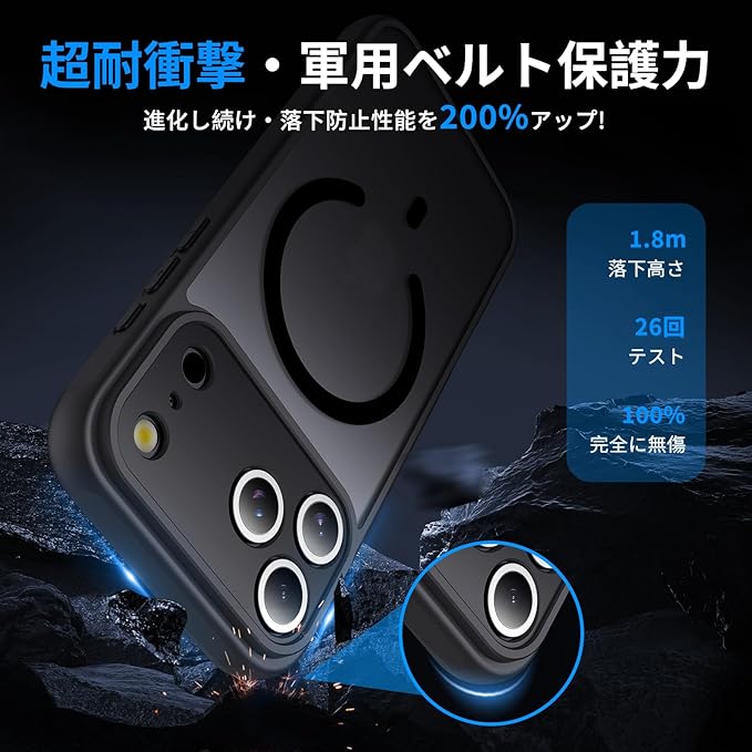 【精密カメラ保護】対応 iPhone 17 Pro Max ケースのために特別に設計された正確なカメラ切り抜きにより、ほこりの侵入を防ぎ、落下や擦り傷からレンズを守ります。クリアなカメラ機能を維持。