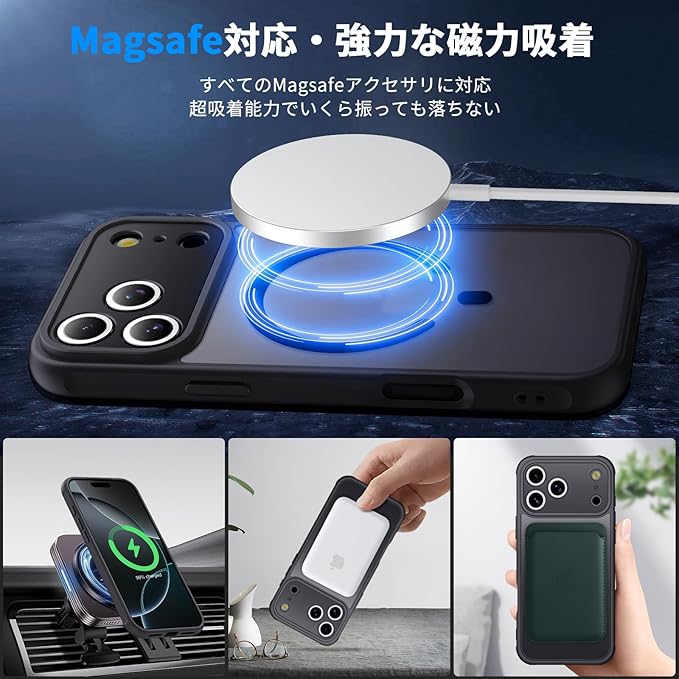 Aunote 対応 いphone17promax ケース Magsafe対応 カメラ保護 米軍MIL規格 耐衝撃 マット 薄型 ストラップホール付き ワイヤレス充電対応 スマホケース iPhone17promax ケース ブラック