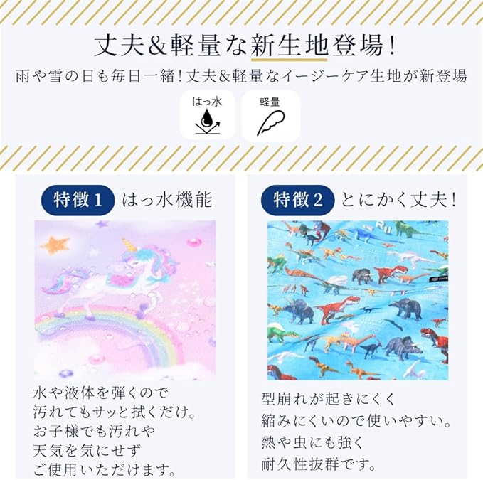 軽量・丈夫・速乾性。トップクオリティの新素材で快適さを追及!。快適さを追求した新素材は、シワになりにくく、耐久性もバツグン。今後もおしゃれ&可愛い柄で登場予定です。