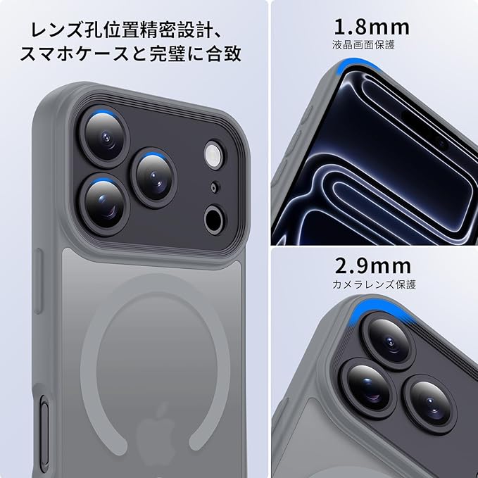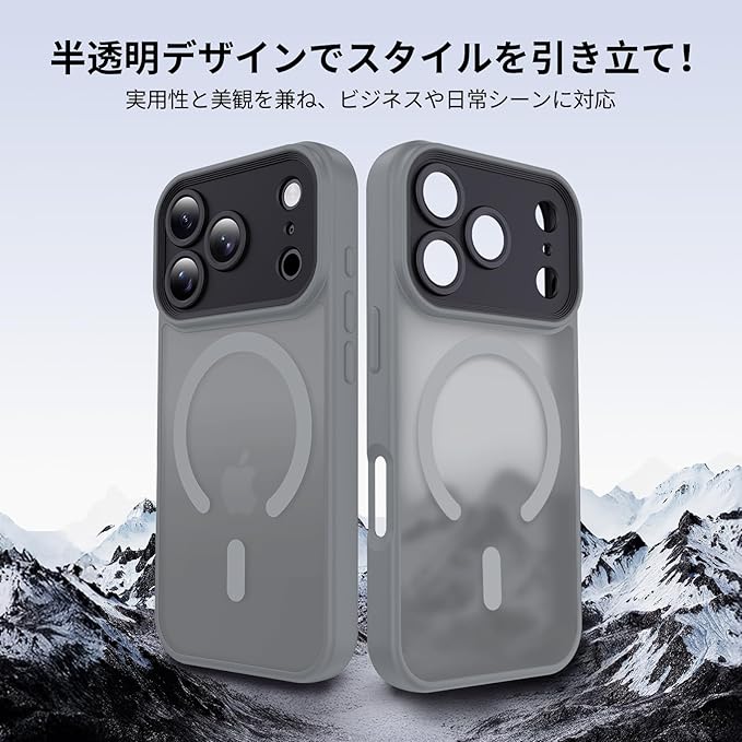 Aunote iPhone 17 Pro Max ケース 精密カメラ保護 MagSafe対応 薄型 軽量 米軍MIL規格 耐衝撃 黄変防止 耐久性 スマホケース いphone17promax ケース カバー グレー