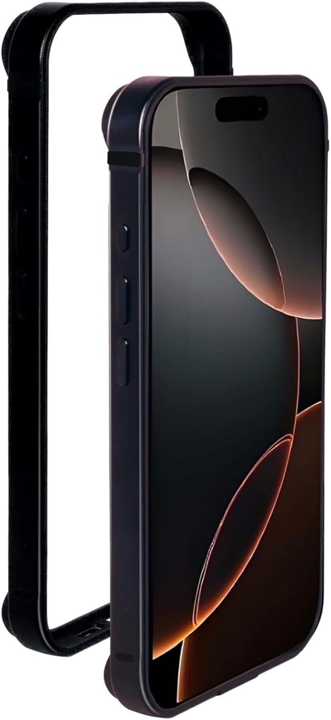 iPhone17promax 用 アルミバンパー ケース [メタル+シリコン二重構造] フレーム 二重構造 レンズ保護 一体感 ストラップ穴 耐衝撃 iPhone17 promaxバンパー 超薄軽量 放熱設計 (ブラック, iphone 17 Pro Max)