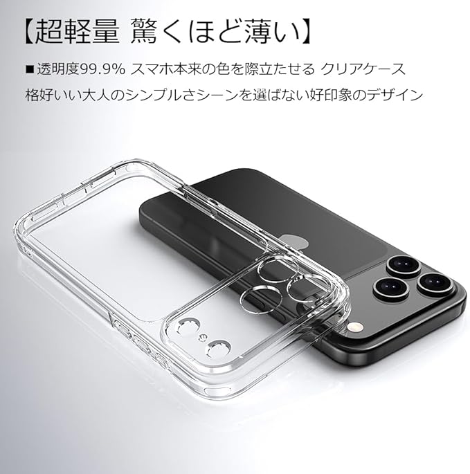 【薄型・軽量 クリスタルクリア】 For iPhone17 ProMax ケース カメラレンズ保護 衝撃吸收 すり傷防止 黄変防止 アイフォン17 プロマックス用カバー スマホケース おまけ強化ガラスフィルム付き cs129a (i17promax, クリア)