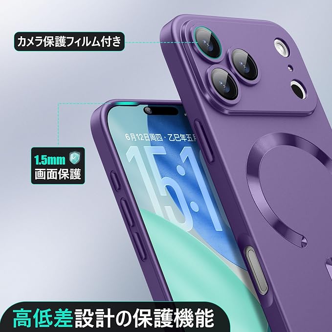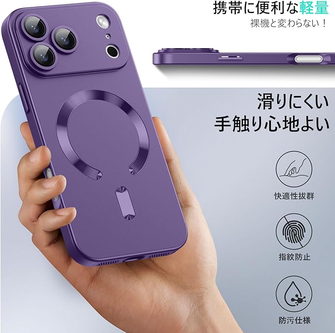 【Magnetic対応・一体型レンズ保護】iPhone 17 Pro Max 用のケース 耐衝撃 柔軟TPU 軽量 薄型 ストラップホール付き アイフォン17 pro max 用のケース 指紋防止 耐久性 人気 6.9インチ 携帯カバー 紫 WY93-73
