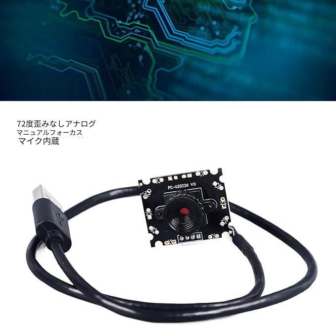 2MPカメラモジュール 有線カメラ HD画質 USB接続 72度歪みなし 手動フォーカス ノートパソコン用 アナログマイク内蔵 GC2154チップ 暗視機能 ディストーション