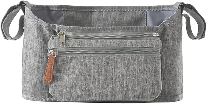 [KASSAI]ベビーカーバッグ 多収納 軽量180g 取り外しポケット フック不要(グレー)