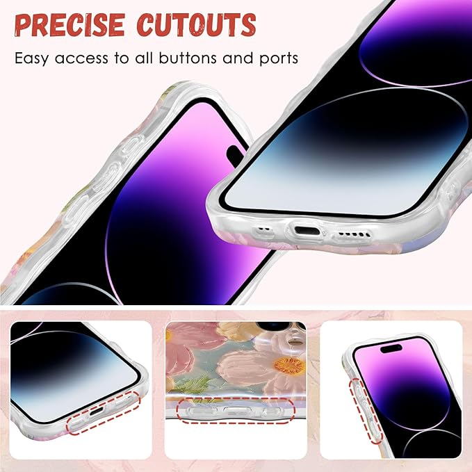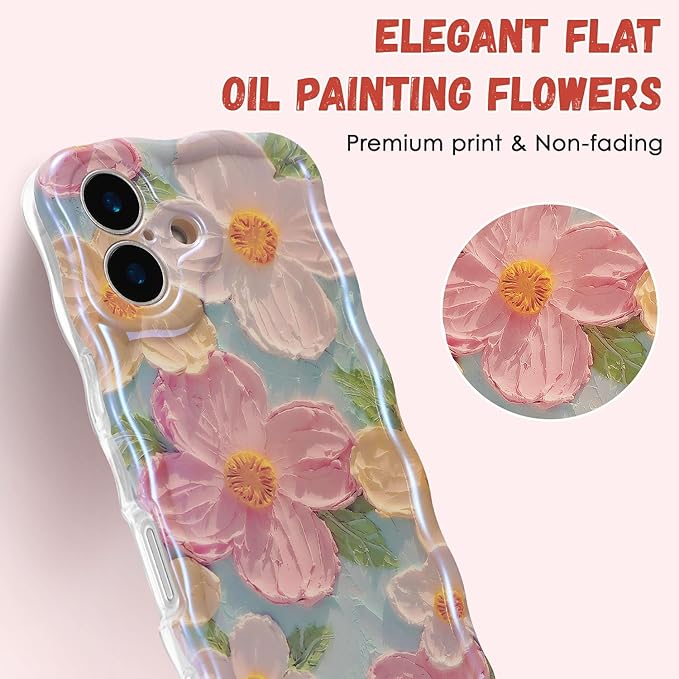 【花柄デザイン ▪ フィット感】背面にカラフルな油絵の花柄、色味が優しく、いつものスマホに上品さをプラス。側面が透明なデザインからスマホカラーが見えるデザインで、本来の美しさと高級感をそのままに映り出し。