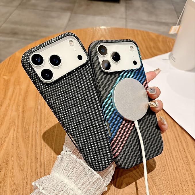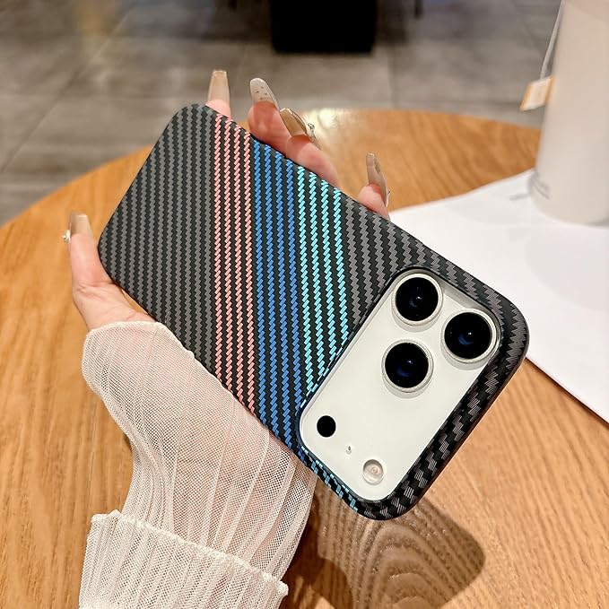 MQman iPhone17ProMax 用 ケース 薄い軽量 MagSafe対応 カーボン調 レンズ保護 シンプルデザイン 耐衝撃カバー (三色, iPhone17ProMax用)