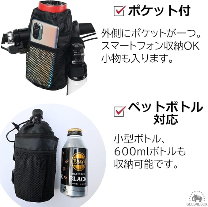 ドリンクホルダー は小型ペットボトル用、600mlボトル、小型水筒用にも使用できます。