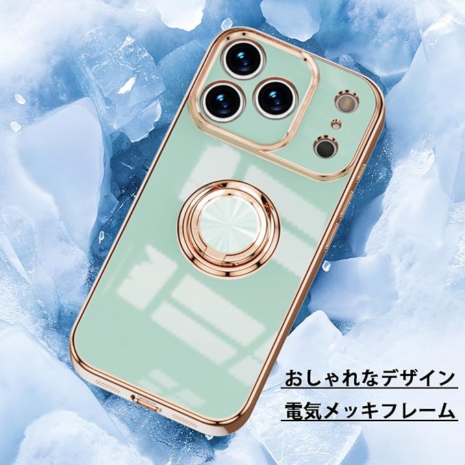 スマホケース 対応 iPhone 17 Pro Max 用 ケース リング付き メッキ加工 レンズ保護 tpu ソフト ストラップホール付き 耐衝撃 スリム おしゃれ 携帯カバー アイフォン17プロマックス 用 ケース (グリーン)