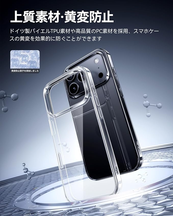 【黄変防止強化材質】高品質PC素材とドイツ製のバイエルTPU素材を使用し、iPhone 17Pro Maxの美しさを損なうことなく、スマホ本来の美しさ保ちます。TPUポリマーに添加されたUV剤が黄変防止を大幅に向上させ、長期間使用しても光沢と透明感を維持することができます!また、ワイヤレス充電にも対応しているので、急速充電も可能です。あなたの生活をより便利にまた快適にします。