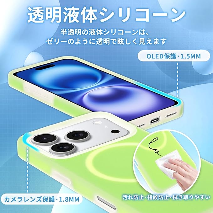 iPhone 17 Pro Max 用の ケース MagSafe対応 シリコン 耐衝撃 【ジェリータッチシリーズ】 いphone 17ProMax スマホケース 5層構造 さらさら手触り 衝撃吸収 指紋防止 あいふおん 17ProMax カバー 超防汚性 滑り止め ワイヤレス充電対応 超軽量 薄型 オシャレ,グリーン