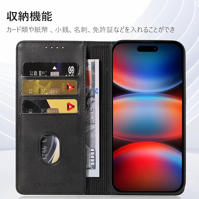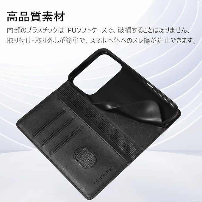 QUEASON【iphone 17 pro max 用 ケース 手帳型】マグネット式 いphone17promax 用 ケース 手帳型 スタンド機能 iphone17プロマックス 用 カバー カード収納 アイホン17プロマックス 用 カバー 耐衝撃 落下防止 防塵()