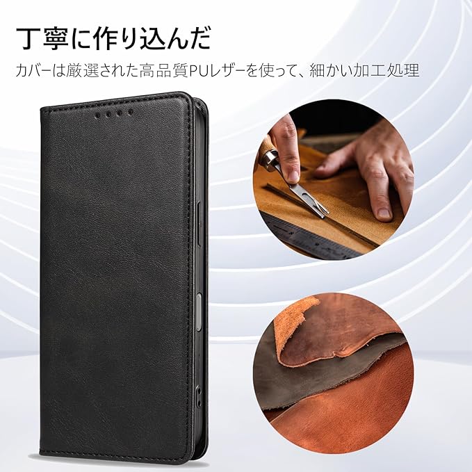 【高級素材】iphone17pro max 用 ケースの外部保護ケースは上質な合皮(PU)合皮を採用して、放熱性や耐衝撃が良く、肌触りがよく、塵、埃が入るのも防ぎます、素材の表面に手触りは非常に良いフィット感を与えられ。夏でも手汗で変な匂いが出てきてません。