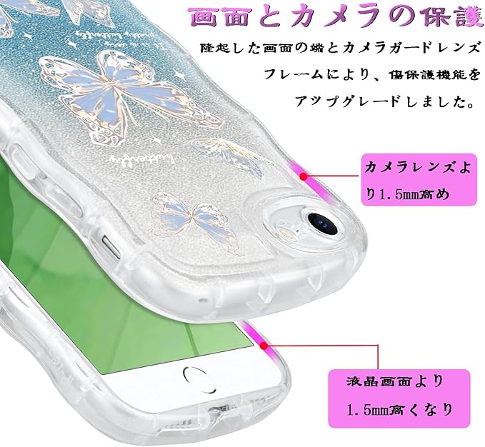 【ウェーブ縁】アイフォンiPhone用透明キラキラケースは柔らかいTPU製で、耐傷性、耐指紋性、耐衝撃性に優れ、取り外しも簡単,お手入れし易い。