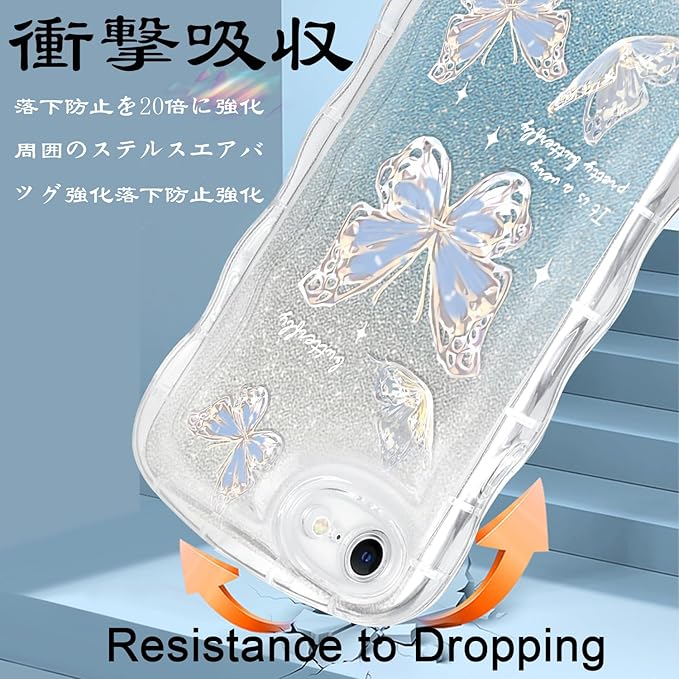 MuZiF iPhone 17 Pro Max 用 ケース クリア キラキラ 可愛い ちょう ウェーブ TPUソフト 透明 かわいい 韓国 薄くて軽い 人気 おしゃれ スマホケース 耐衝撃 携帯カバー 17 Pro Max 用 クリアケース (iPhone 17 Pro Max 用,ブルー)