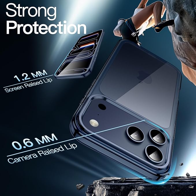 JETech iPhone 17 Pro Max 6.9インチ用 ケース 黄ばみなし 衝撃吸収 バンパーカバー 傷つけ防止 クリアバック (ディープブルー)