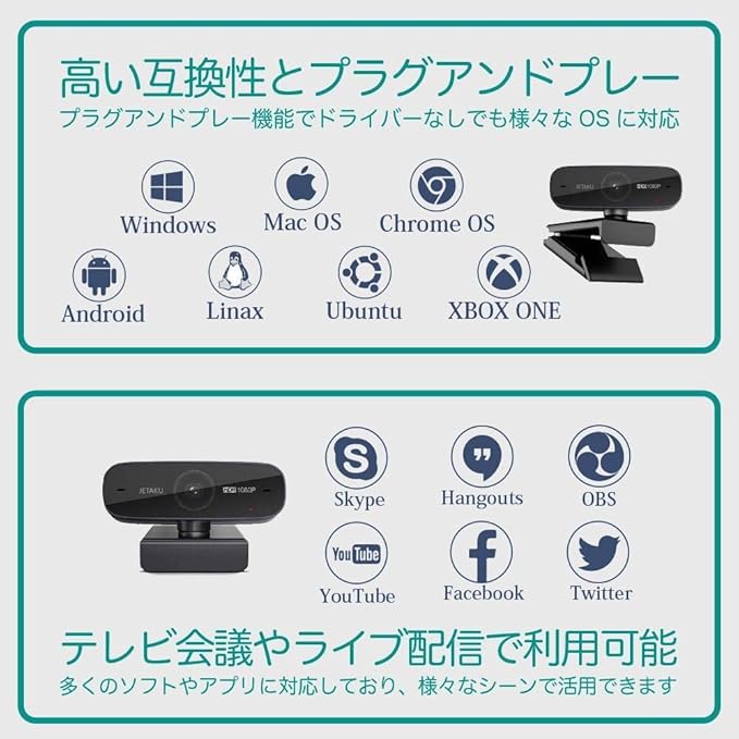 ウェブカメラ 60fps 在宅勤務 Webカメラ 自動焦点 美顔機能 1080P フルHD 200万画素 マイク内蔵 ビデオ通話 skype会議 オートフォーカス コンピューター用 タブレット XboxOne PC TV Boxサポート MAC/Windows 7/8/10対応