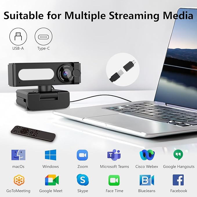 SAMEUOの2K ウェブカメラは、高品質なビデオ通話やストリーミングを実現する優れたデバイスです。調整可能なクリップマウントを採用し、モニターやノートパソコンへの取り付けが簡単で安定性も抜群です。スタイリッシュなブラックカラーのボディは、どんな環境にも自然に溶け込みます。フルQHD 2Kの鮮明な映像品質で、オンライン会議やライブ配信も鮮やかに表現。広角レンズを採用し、より広い視野角を確保できるため、グループでのビデオ通話にも最適です。また、内蔵マイクにより、クリアな音声伝達も可能です。プラグアンドプレイ対応で、面倒な設定は不要。Windows、Mac、Androidなど、様々なプラットフォームで使用できる汎用性の高いウェブカメラです。在宅勤務、オンライン授業、ビデオ通話など、多様な用途に対応する信頼性の高い選択肢となっています。