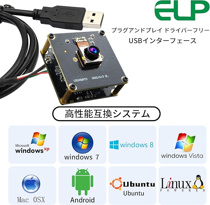 複数のオペレーティングシステムとアプリケーションをサポート: ELP 48MP USBカメラは,様々なオペレーティングシステムとアプリケーションと互換性があります.WinXP/Vista/WIN7/WIN8、UVC付きLinux、Mac-OS X 10.4.8以降、UVC付きWince、Android 4.0以降でシームレスに動作します。機械ビジョンの開発や OpenCV カメラモジュールや Raspberry Pi で作業しているかどうか 私たちのカメラは完璧な選択です