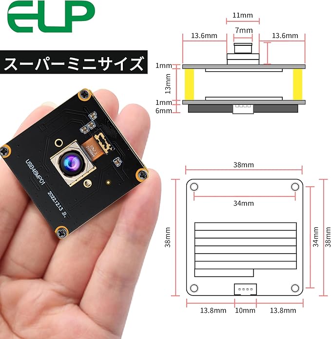 ELP 4800万画素 Webカメラ オートフォーカス 広角 小型 USBカメラモジュール パソコン 100度歪みのないレンズ 8K ウェブカメラボード UVC USB2.0 Webかめら 6000P PCカメラ ミニ ビデオカメラ CCTV 工業用 WebカメラAndroid Windows Linux Mac Raspberry Piで使用 ELP-USB48MP01-AF100