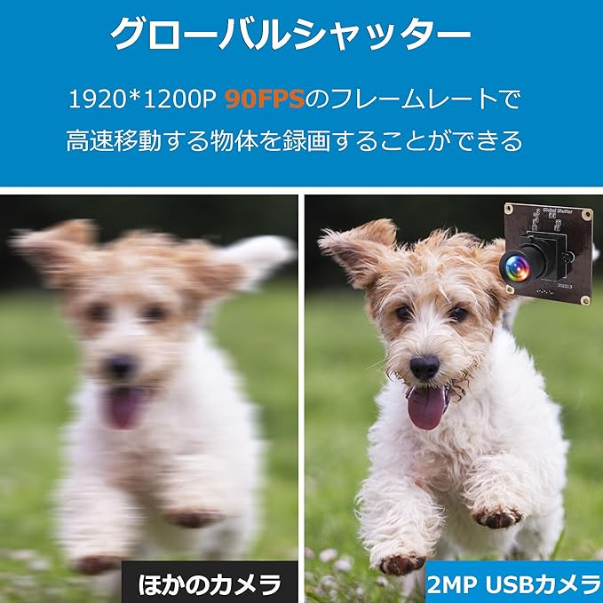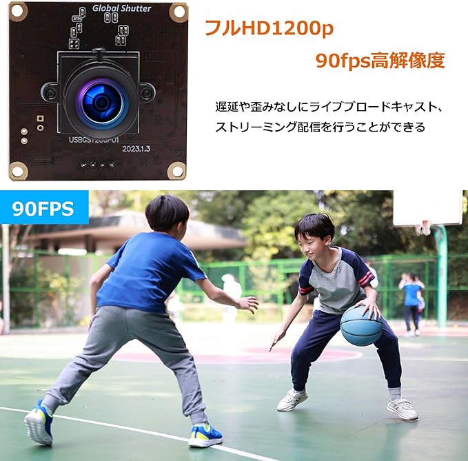 【グローバルシャッター】このusbカメラモジュールはグローバルシャッター設計を採用して、90FPSのフレームレートで高速移動する物体を録画することができます。グローバル シャッターは、ローリングシャッターアーチファクトを回避することが可能であり、モーション ブラーを発生させずに、移動するオブジェクトの鮮明な画像を撮影するのに役立ちます。