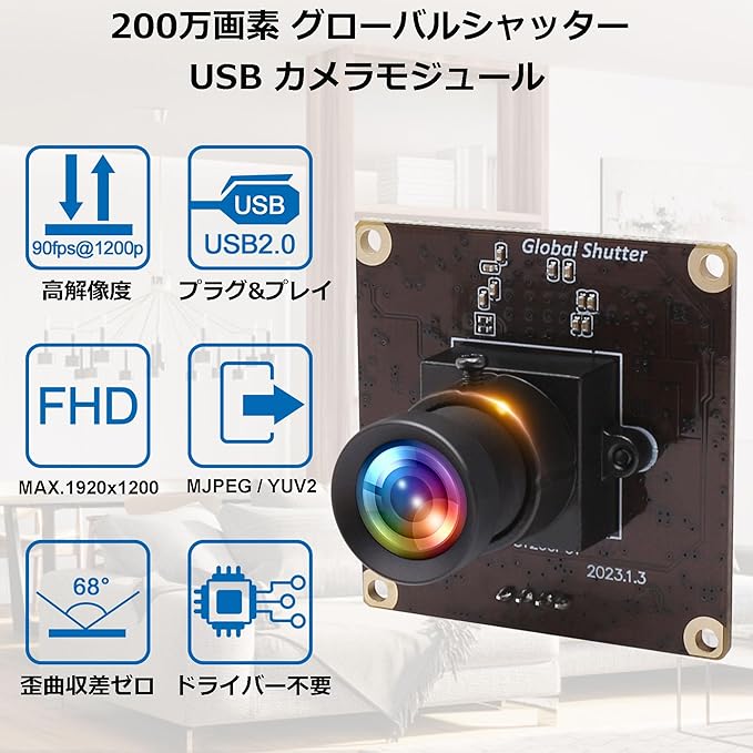 モデル名 Rabbitroom USB カメラ モジュール フルHD1200P 90FPS 68 視野角 グローバルシャッター Webカメラ 200万画素 歪曲収差ゼロ ウェブカメラ パソコンカメラ PCカメラ ストリーミング ウェブカム USBプラグ&プレイ Linux Windows Android Mac Youtube zoomなどに対応Rabbitroom USB カメラ モジュール フルHD1200P 90FPS 68 視野角 グロー… 表示を増やす
