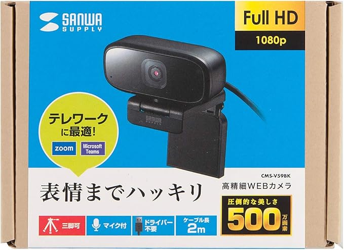 サンワサプライ(Sanwa Supply) WEBカメラ USB A接続 FULL HD対応500万画素 Zoom/Microsoft Teams対応 CMS-V59BK