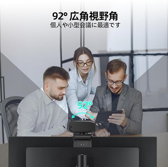 [92 の広い視野角] 当社の4Kウェブカメラは、92 の広い視野角と360 の完全な回転ヘッドを備え、理想的な位置決めのために90 下向きに傾けられており、プライバシーカバーが内蔵されているのですぐに安心できます