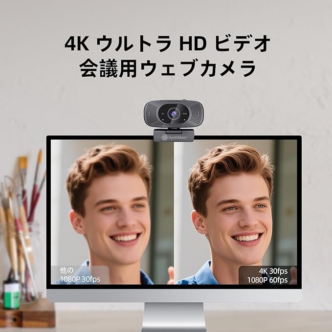[4K 30FPS、1080P 60FPS] このPC用4Kウェブカメラは、鮮明な4K解像度(30fps)で驚異的なディテールを、1080P解像度(60fps)で滑らかな動きを再現します。自動光補正機能により露出を調整し、画質を最適化。8MPの高精細センサーで、より鮮明な映像をお届けします
