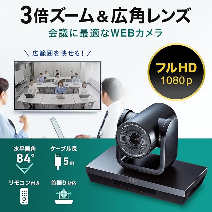 サンワサプライ 3倍ズーム搭載会議用カメラ CMS-V50BK