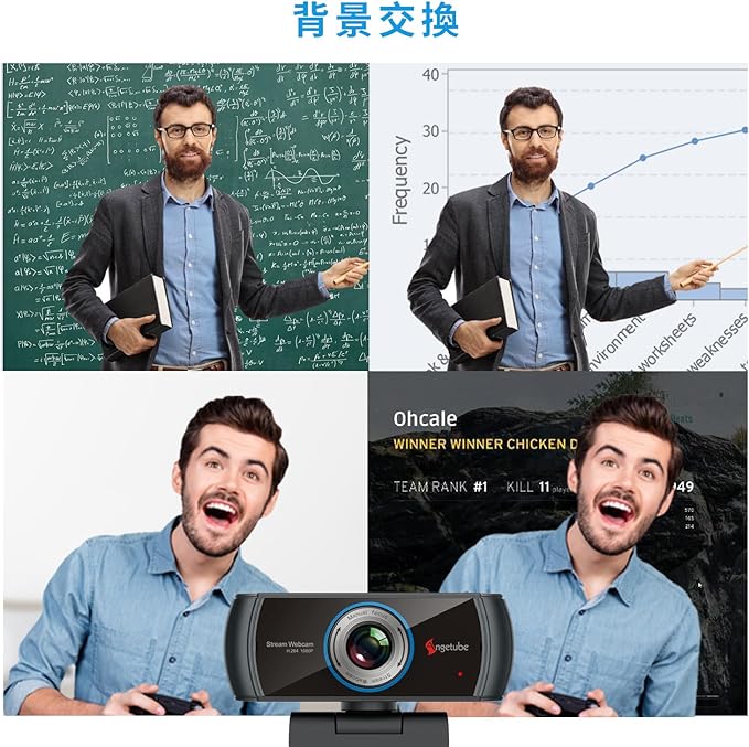 広角レンズ: 100度の広角レンズ付きウェブカメラ。ウェビナー、家族のビデオ会議に適しています。光学的な歪みがなく、写真やビデオに真の形状を反映します。