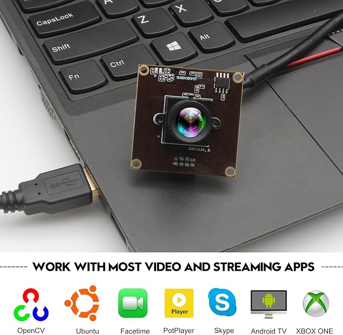 USB 3.0 50FPS 高速ウェブカメラ:USBカメラは高速USB 3.0コネクタを搭載し、OTG USB 3.0データ転送により占有帯域幅が少なく、作業効率が大幅に向上します。USB 2.0よりも高速でデータ転送効率が高く、時間を大幅に節約できます。超小型で薄型なので、組み込みアプリケーションに最適です。