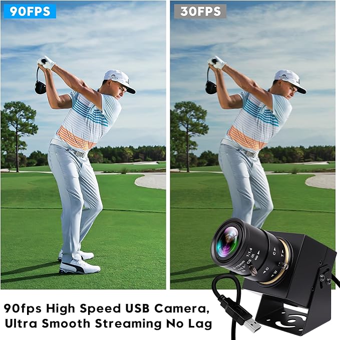 ELP 90fps グローバルシャッター USB カメラ クローズアップ高速 2.8-12mm 4 倍手動ズーム バリフォーカルレンズ付き 1200P Goft スイング プラグアンドプレイ ノートパソコン Raspberry Pi Mac OS Jetson Nano 用