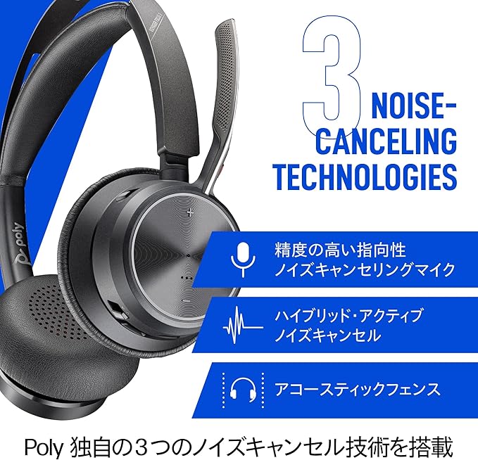 【2025年モデル】 Poly Voyager Focus 2 ワイヤレス ヘッドセット 充電スタンド付属 Acoustic Fence対応 アクティブノイズキャンセル (ANC) PC Mac スマートフォン Bluerooth接続 Zoom対応 Microsoft Teams 認定 メーカー保証2年間 国内正規品 A4HT5AA#AC3