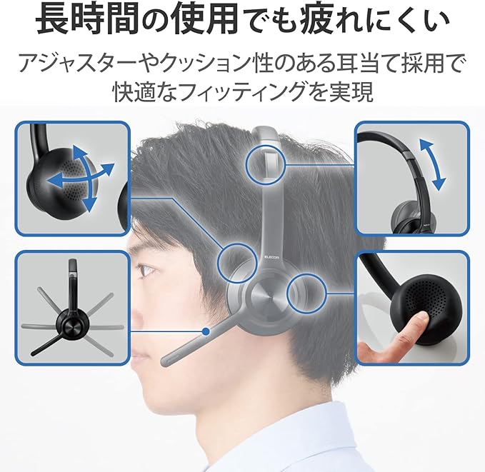 ■安定した装着感で長時間の使用でも疲れにくく、しっかりと音声を聞き取れるオーバーヘッドタイプの両耳ヘッドセットです。