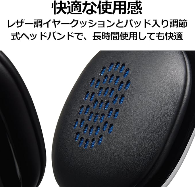 【ソフトなイヤーパッドで長時間でも快適な使用感】 イヤーパッドはレザー調で、ソフトなイヤークッション素材を採用、長時間の快適性を提供。