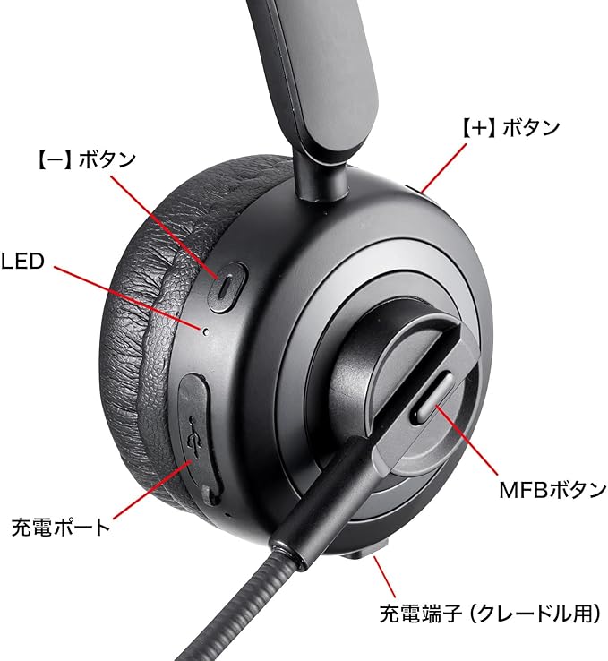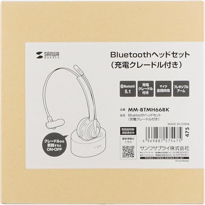 サンワサプライ Bluetoothヘッドセット(ノイズキャンセル機能・充電クレードル付き) MM-BTMH66BK