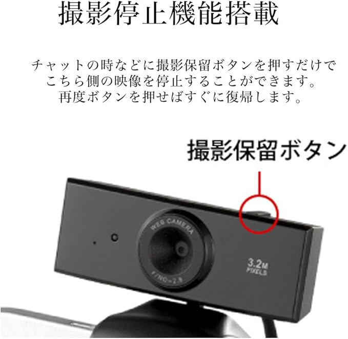 チャットの時などに撮影保留ボタンを押すだけで、こちら側の映像を停止することができます。再度ボタンを押せばすぐに復帰します。
