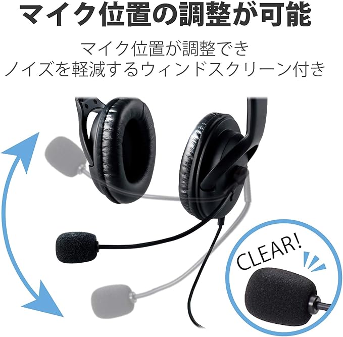 エレコム ヘッドセット マイク USB 両耳 オーバーヘッド 片出しケーブル 1.8m HS-HP28UBK
