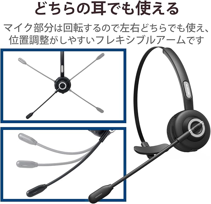 ■マイク部分は回転することができ、左右どちらの耳にも装着できます。